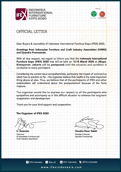 IFEX Jakarta will be Postponed because the imapct of Corona Virus (COVID 19) until situation is Condusive to every participant.